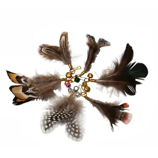 3ofNi猫じゃらし天然フェザーを使用した6个交換可能な猫用おもち