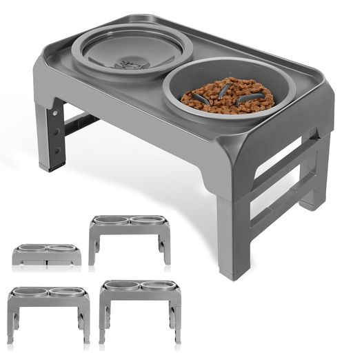 SCHITECペットボウルフードボウル食器台スタンド【グレー・4段階調節・中大型犬・猫用・ボウルと給水器付き】高度調節可能早食い防止低速給水給餌ボウル水やり滑り止め