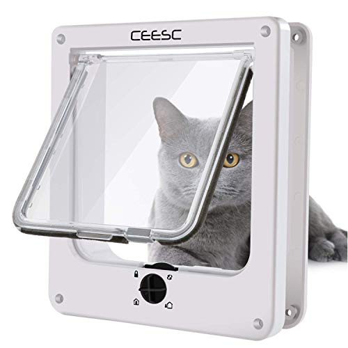 CEESC [バージョンアップ]中キャットドア、室内外装ドア用4ウェイロックキャットフラップドア、キャッツ&ドギー用耐候性ペットドア(ホワイト、M)