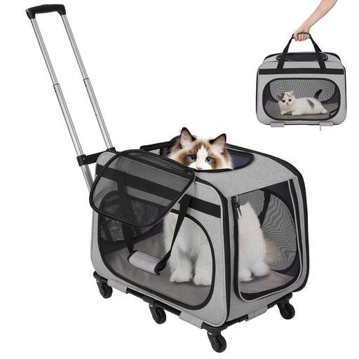 HOVONO特大猫キャリーキャスター付き小型犬キャリーカートペットトロリーバッグペットキャリーケース20kgまでサポート猫は4匹まで連れていけます通気性旅行/通院/交通機関/災害避難用