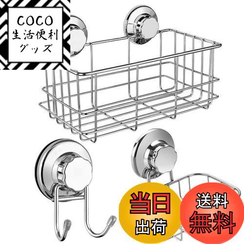 【送料無料】SANNO 浴室シャワーラック 石鹸置き フック3個セット 強力吸盤 風呂場洗面所キッチン収納 ボーディーソープ シャンプー コンディショナー壁掛け収納 ステンレス製
