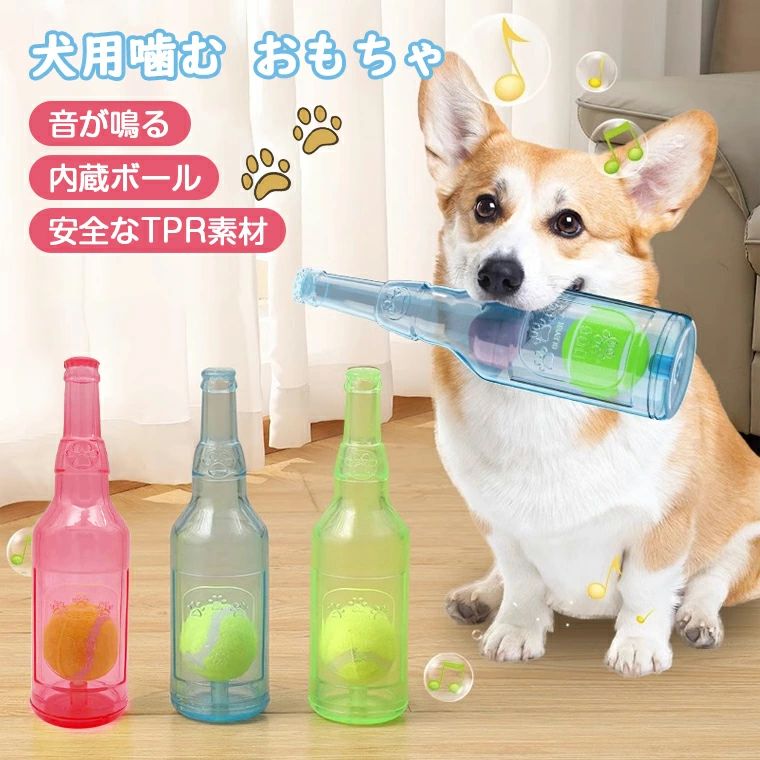 【音が鳴る】犬 おもちゃ 犬 音の出るおもちゃ 噛むおもちゃ 壊れにくい 洗える 噛んで遊ぶ ストレス解消 ボトル 犬 デンタルケア 運動不足解消 ボール付き 耐久性 安全