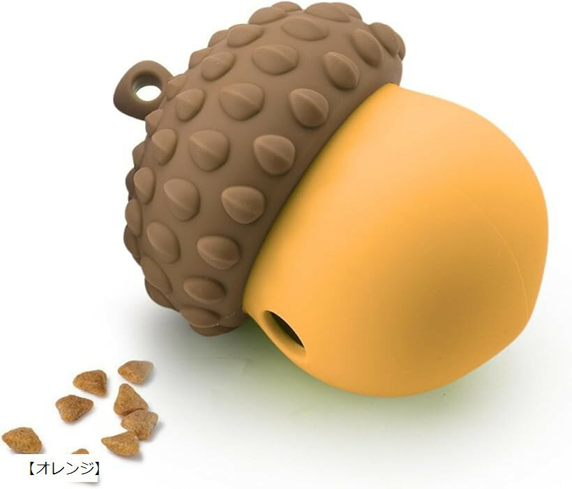 知育ボール どんぐり型 おやつボール 犬 噛むおもちゃ 留守番 歯磨きトイ 早食い防止 歯垢除去 ストレス発散 脳トレ 丸洗い可 シリコン製 (「オレンジ」)