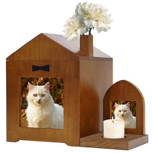 aleawol ペット 仏壇 木製 15x15x20cm ペット 骨壷収納 愛犬 愛猫 お祈り メモリアルハウス かわいい ペット供養 フォトフレーム付き、小型犬 中型犬 大型犬 猫 ハムスター用 (ブラウン)