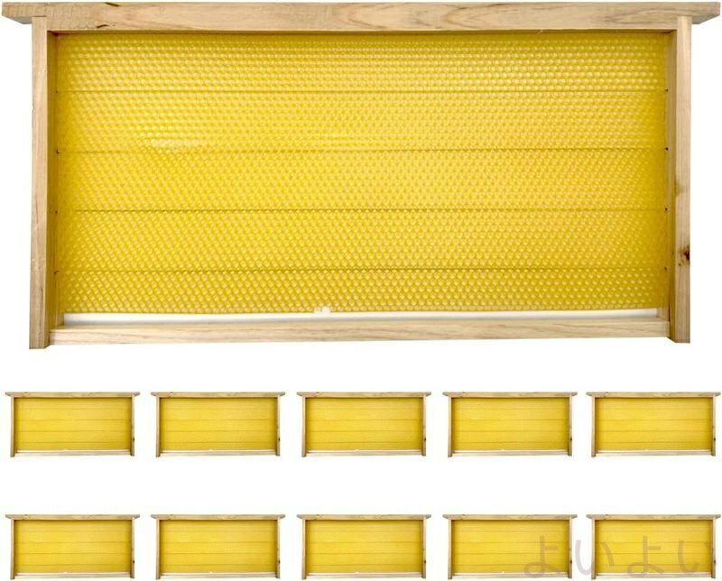 養蜂器具 10点セット 完成巣枠 巣礎付き スソ付き 巣礎 10枚 蜂の巣 蜜蜂 セイヨウミツバチ シート ラ式 ミツバチ用 養蜂設備 養蜂用具 蜂蜜箱 飼育 養蜂ツール