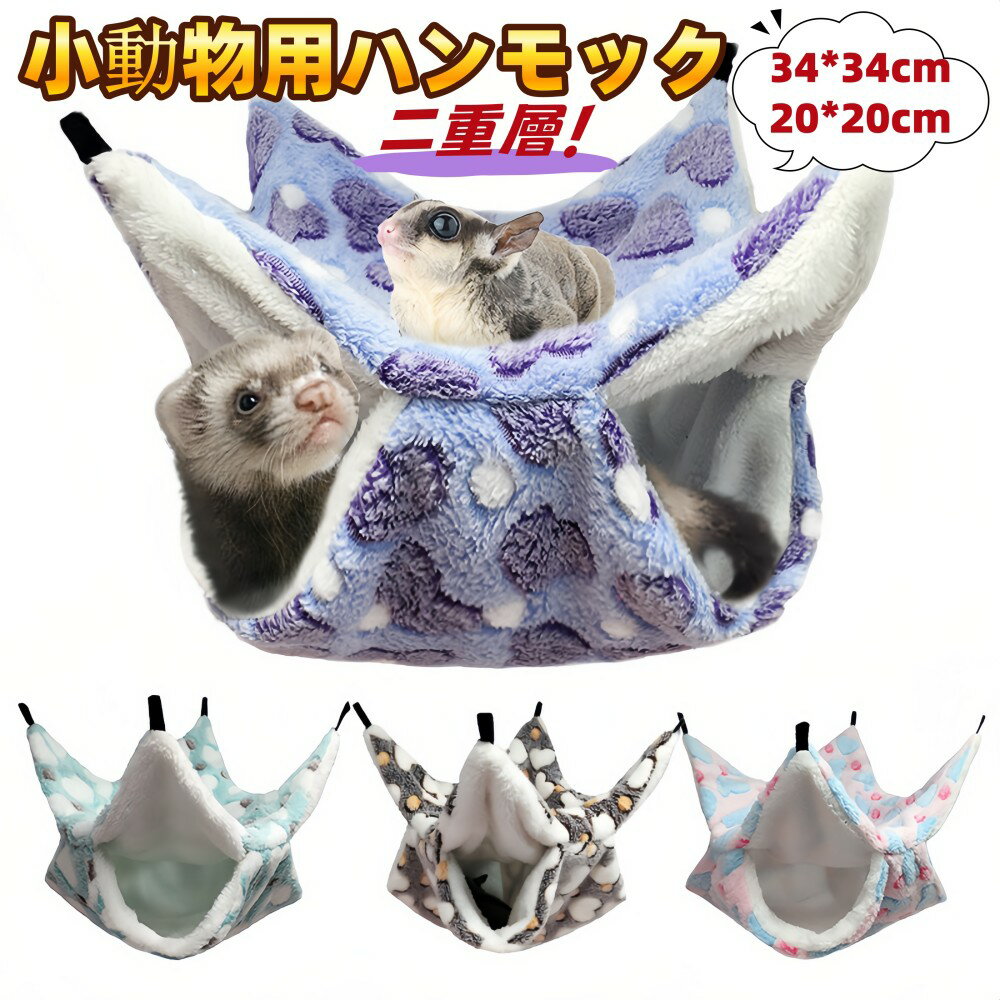 小動物用ハンモック ハムスターハンモック『二重層 2サイズ:34*34cm 20*20cm』小動物 ハンモック フェレット 保温 ふわふわ ペット ハンモック ハンモック 冬用 小動物 ケージ内装 取り付け簡単 吊り下げる 寝床 休憩所 遊び場 暖かい巣