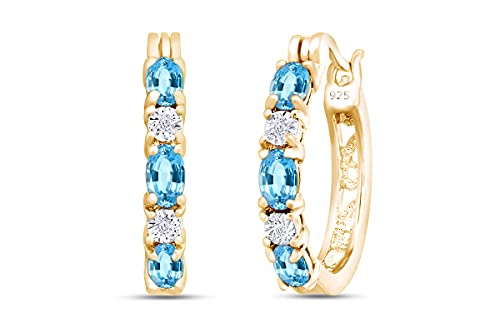 【中古】【未使用・未開封品】人工アクアマリン&ホワイトキュービックジルコニアフープピアス スターリングシルバー14K金メッキ