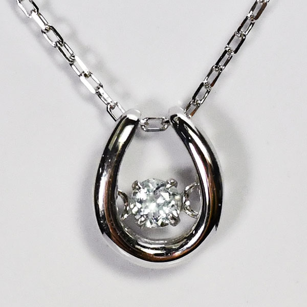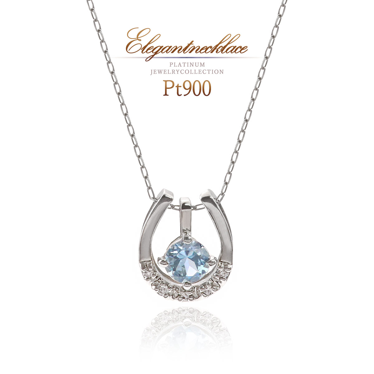 プラチナ ネックレス 馬蹄 ホースシュー デザイン アクアマリン ダイヤモンド 天然石 アクセサリー オシャレ 30代 40代 50代 記念日 贈り物 鑑別書付き 本物 水色 ブルー カラーストーン