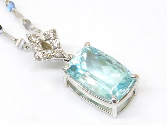 K18/Pt900 アクアマリン 3.919ct ダイヤ 0.13ct ☆ ホワイトゴールド/プラチナ 4.8g ネックレス アジャスター仕様 レディース □ 7J