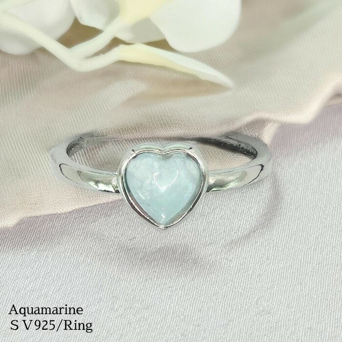 ハート リング シルバー 指輪 華奢 アクアマリンサンタマリア ピンキーリング