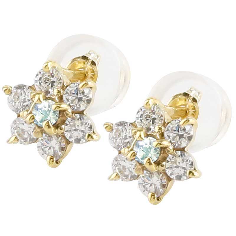 [両耳用] ピアス ミルキーアクアマリン (3月) 6/8mm 天然石 誕生石