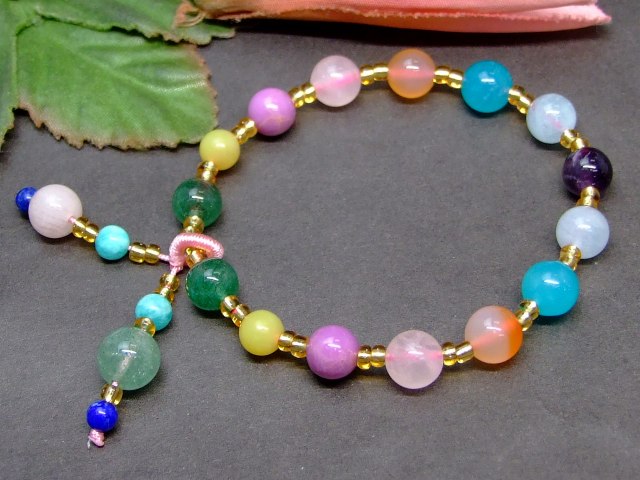 4mm〜9mm アメジスト アクアマリン等 ミックス石 ブレスレット 内径16cm ポーチ付き 天然石 パワーストーン