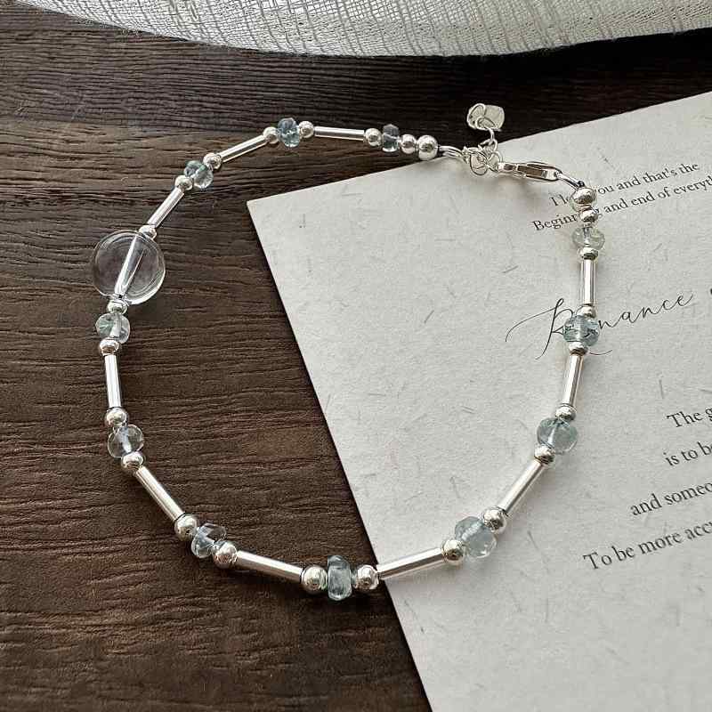 ブレスレット レディース 韓国風 レトロ アクアマリン 水晶 純銀 デザイン ファッション アクセサリー ニッチ スタイリッシュ ジュエリー 日常使い 華奢 繊細 ブルー系 輝き 装飾品 手元 コーディネート