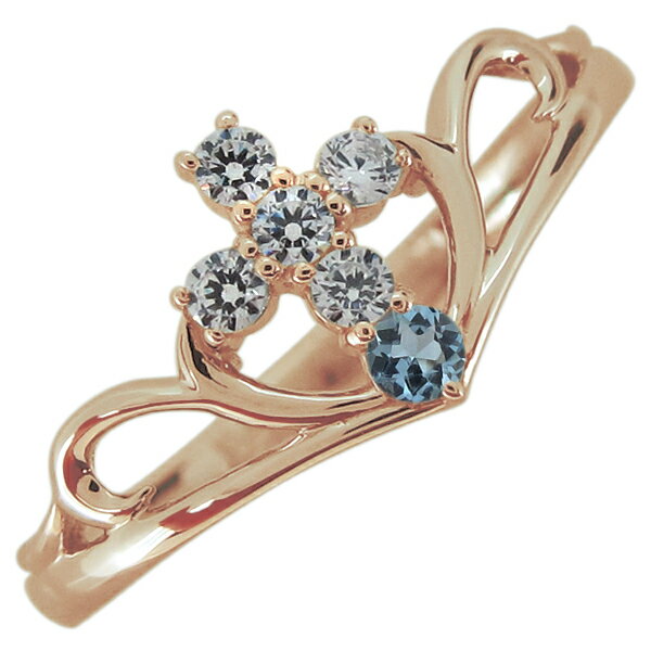 送料無料 3月誕生石 指輪 クロス 唐草 レディース K10