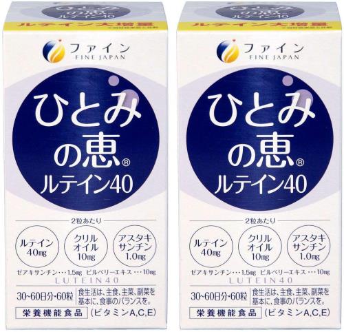 ファイン(FINE JAPAN) ひとみの恵 ルテイン40 ルテイン 40mg ゼアキサンチン 1.5mg アスタキサンチン 1.0mg クリルオイル 10mg サプリ サプリメント 30日分(1日2粒/60粒入) 国内生産×2個