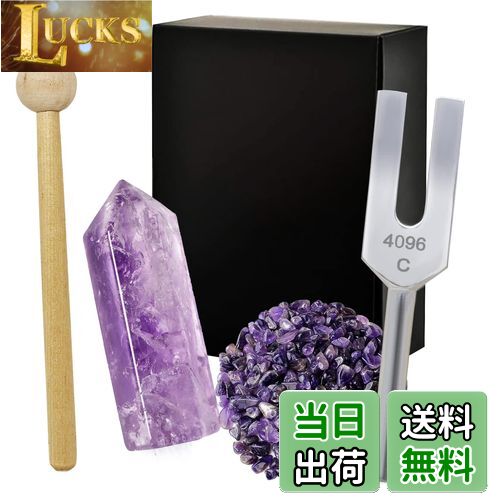 【送料無料】クリスタルチューナー 4096Hz 音叉 天然水晶 浄化用 5点セット リラックス 日本語説明書付 アメジスト WH26 - Purple