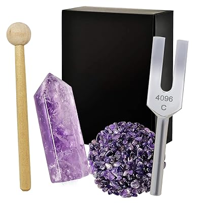 クリスタルチューナー 4096Hz 音叉 天然水晶 浄化用 5点セット リラックス 日本語説明書付 アメジスト WH26 - Purple