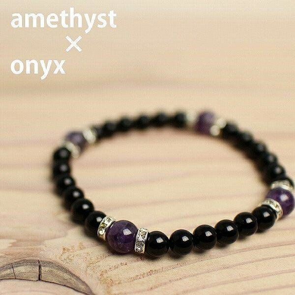 【送料無料】Lucbuyビーズのブレスレット、カップル2PCS /恋人/友情/関係の音とブレスレット、アメジストの魅力8ミリメートル黒曜石弾性天然石ビーズのブレスレット男性用