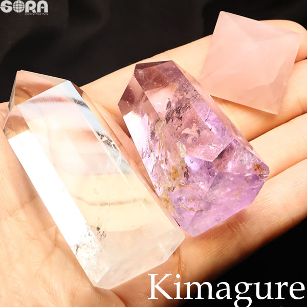水晶 ポイント アメジスト (ポイント)ローズクォーツ ピラミッド