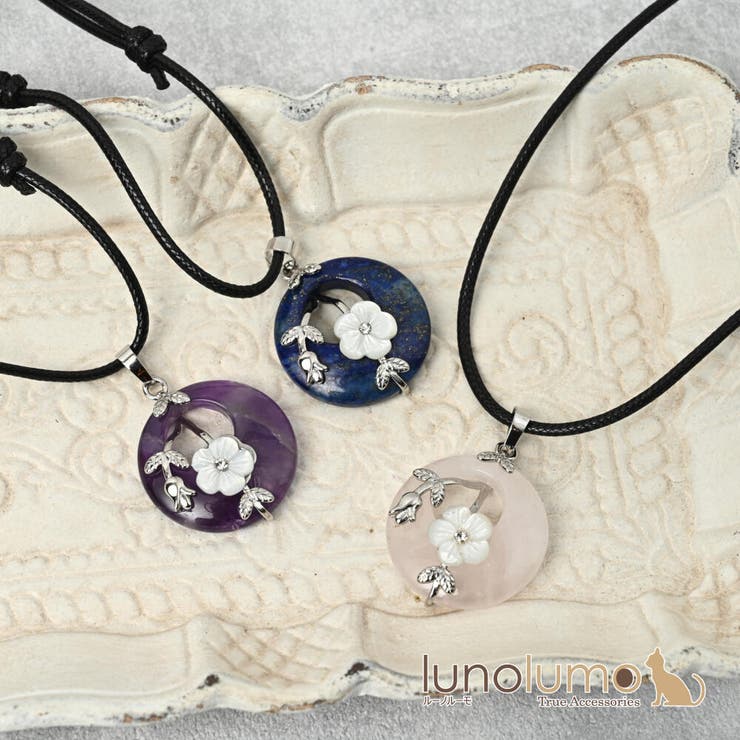 海面からジャンプしたようなイルカのシルエットが可愛らしいペンダント。ゆらゆらと揺らめく天然石の輝きがアクセント。