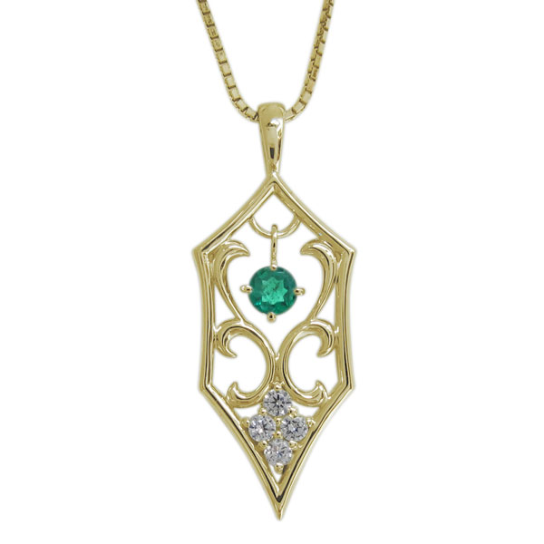 送料無料 メンズ K18 エメラルド 唐草 ネックレス アラベスク