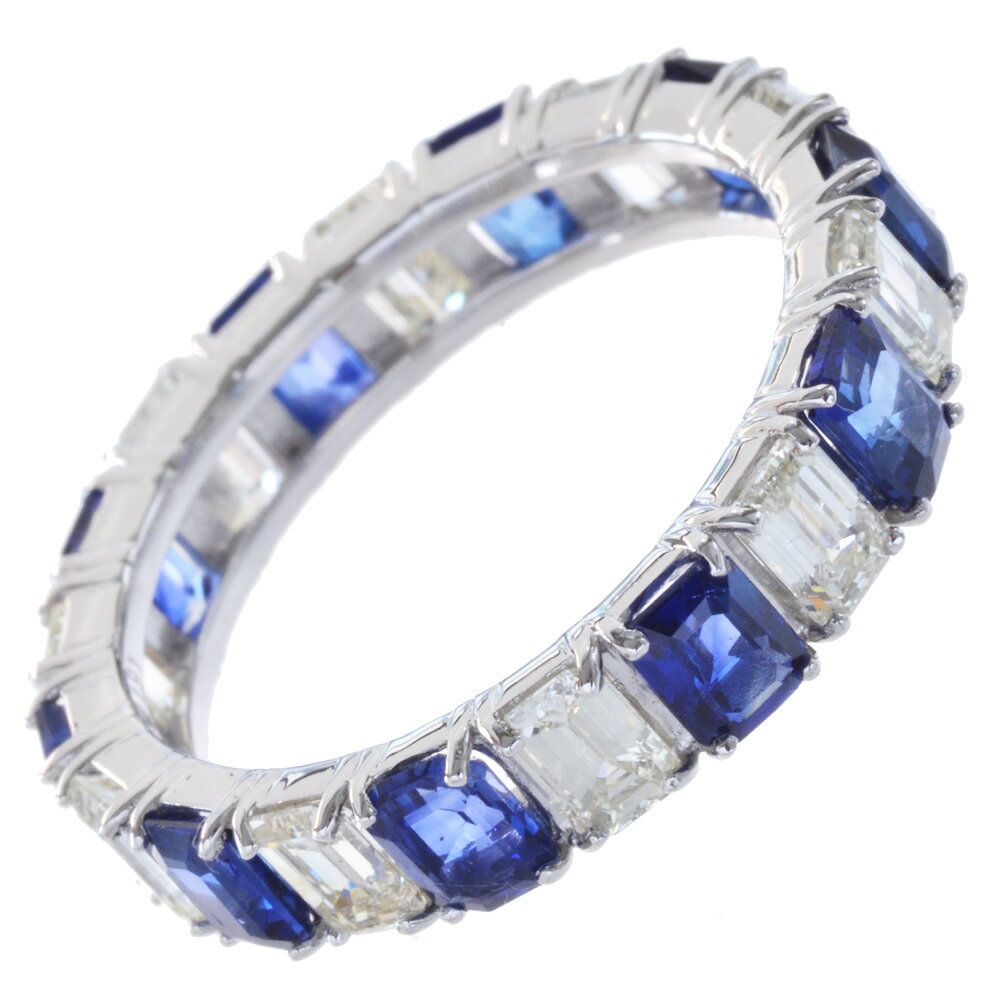指輪 プラチナ エメラルドカット ダイヤモンド サファイア フルエタニティリング Pt900 レディース 鑑別書付きシンプル 30代 40代 50代 60代 おすすめ 一生もの ジュエリー