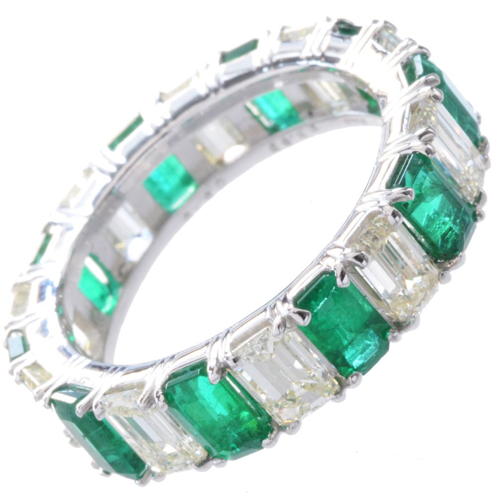 指輪 プラチナ エメラルドカット ダイヤモンド エメラルド フルエタニティリング Pt900 レディース 鑑別書付きシンプル 30代 40代 50代 60代 おすすめ 一生もの ジュエリー