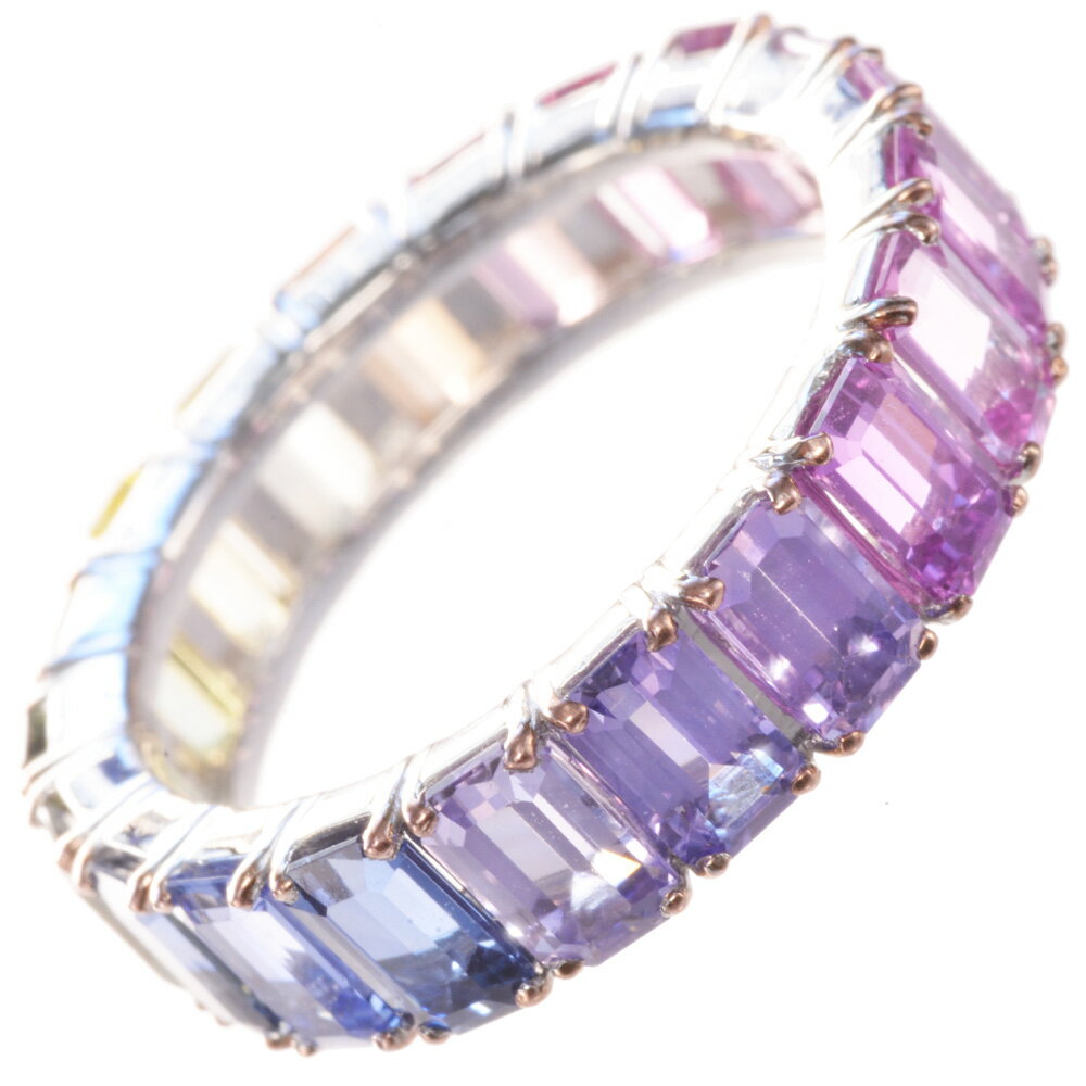 指輪 K18 18金 ピンクゴールド エメラルドカット サファイア フルエタニティリング レディース レインボー グラデーション シンプル 30代 40代 50代 60代 おすすめ 一生もの ジュエリー