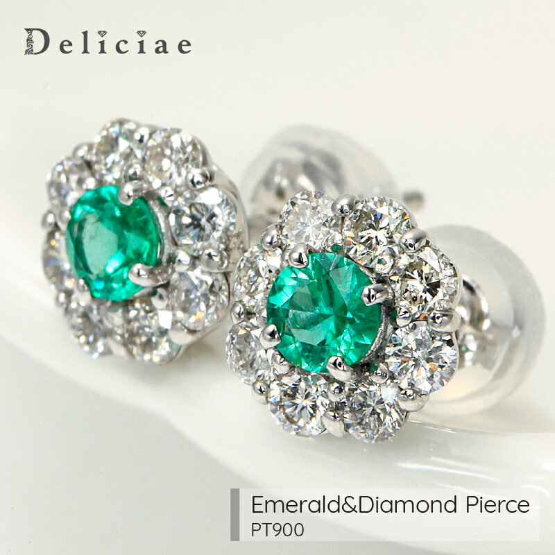 【当日発送商品】上品なフラワーデザインが魅力的 エメラルドピアス!