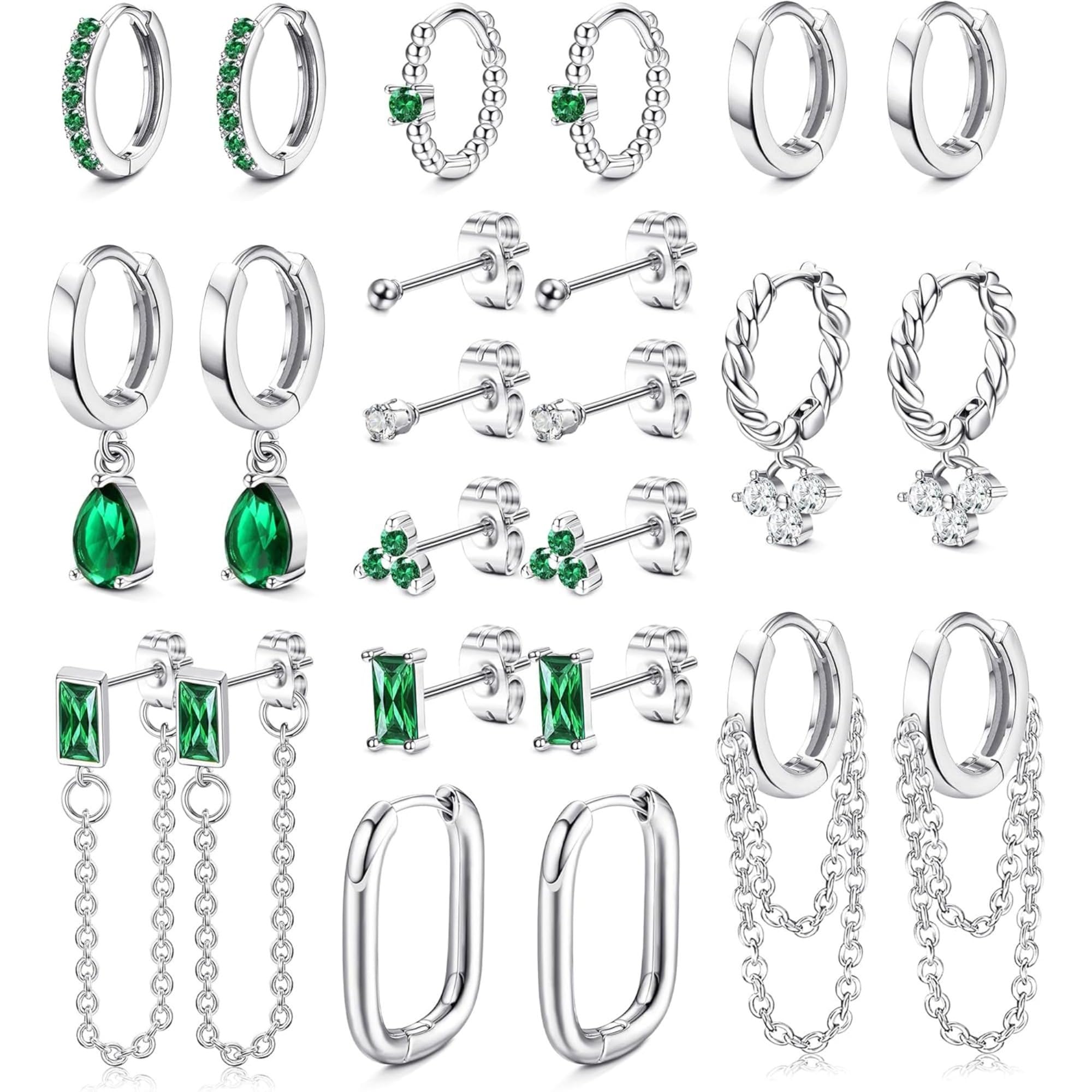 【送料無料】Jstyle 18点 ピアス セット レディース ゴールド シルバー 組み合わせ スタッドピアス フープ リング 複数 小さめ エメラルド ジルコニア アレルギー対応 ステンレス 軟骨 女性 ジュエリー 色:シルバー、サイズ:通用