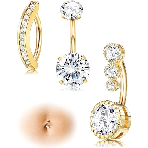 【送料無料】[Jstyle] 3点 へそ ピアス レディース 14g 女性 316L サージカルスチール ベリーバー CZ オパール シンプル リバース へそバー へそ ピアス ボディピアス 色:ゴールド