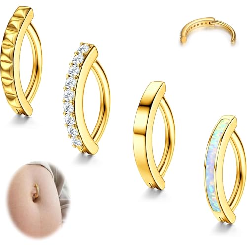 【送料無料】[Jstyle] ボディピアス レディース ヘソ ピアス 14G 女性 ゴールド サージカルステンレス316L アレルギー対応 へそリング シンプル CZ オパール 小さめ フープ ヘソ リング ボディピアス ジュエリー
