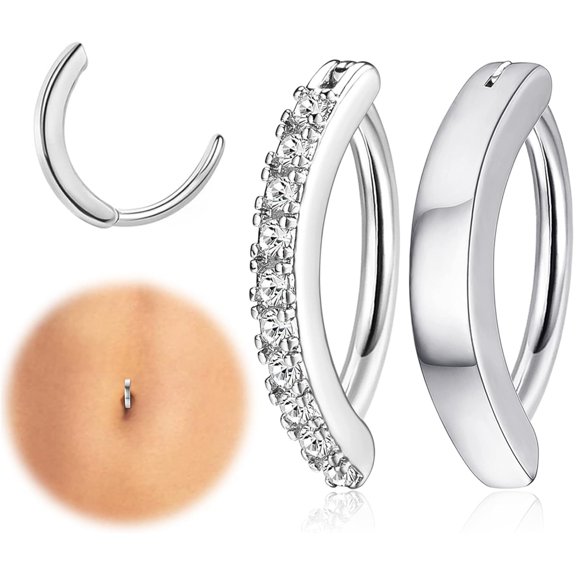 【送料無料】[Jstyle] 3点 へそ ピアス レディース 14g 女性 316L サージカルスチール ベリーバー CZ オパール シンプル リバース へそバー へそ ピアス ボディピアス