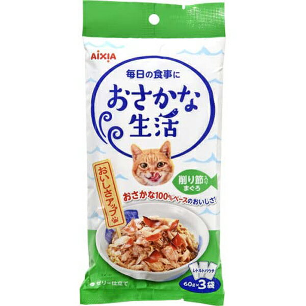 【3個セット】 アイシア おさかな生活 削り節入りまぐろ 180g フィッシュ フレーク アダルト 猫 かにかま入りまぐろ レトルトパウチ 猫用ウェット キャットフード しらす入りまぐろ ゼリータイプ ゼリー仕立て シュリンク 猫用フード オリゴ糖 猫フード 安心素材