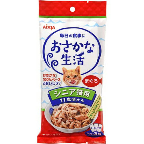 【3個セット】 アイシア おさかな生活 シニア猫用まぐろ 180g マグロ パテ シニア レトルトパウチ 猫用ウェット キャットフード ゼリータイプ ゼリー仕立て シュリンク 猫用フード オリゴ糖 猫フード ペット用品 ウェットフード 柔らかい 全ステージ ネコ 安心素材