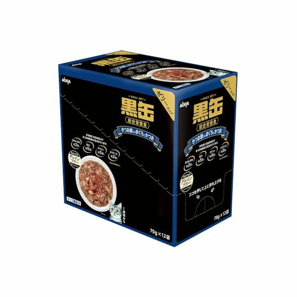【12個セット】 アイシア 黒缶 パウチ かつお節入りまぐろとかつお 70g マグロ パテ 全年齢 穀物不使用 猫用ウェット キャットフード グレインフリー ゼリータイプ まぐろとかつお 猫用フード ペットフード オリゴ糖 総合栄養食 ペット用品 ウェットフード 安心素材