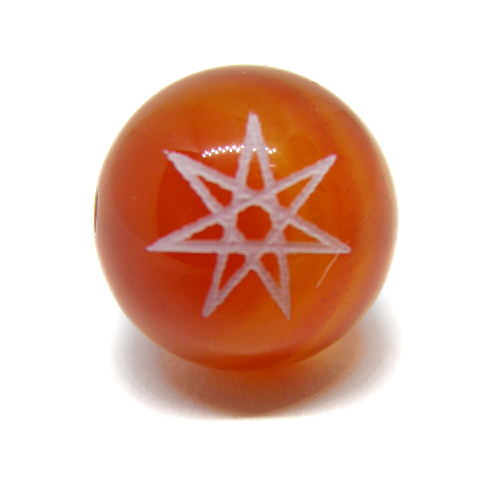 カーネリアン 白彫り 七芒星 Heptagram ヘプタグラム ビーズ 12mm玉ビーズ 横穴 一粒売り パワーストーン