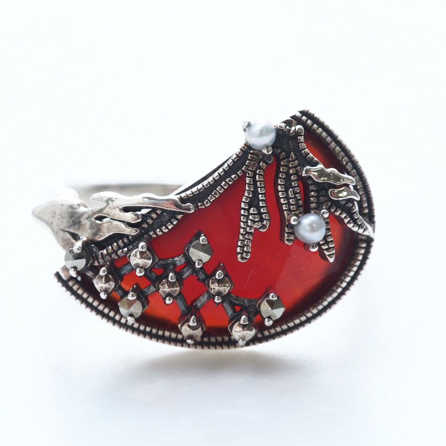 碌山 ブランドジュエリー レディースアクセサリー 女性 銀細工 装飾品 彫刻 繊細 芸術 アート 職人 クラフト シルバージュエリー リング