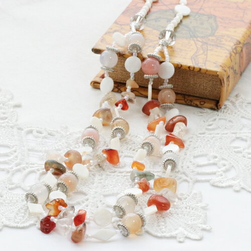 カーネリアン マルチ シェル ガラス 真鍮パーツ エンドレスネックレス 約90cm
