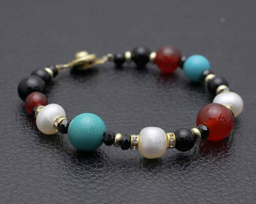 天然石 オニキス カーネリアン ターコイズ ブレスレット