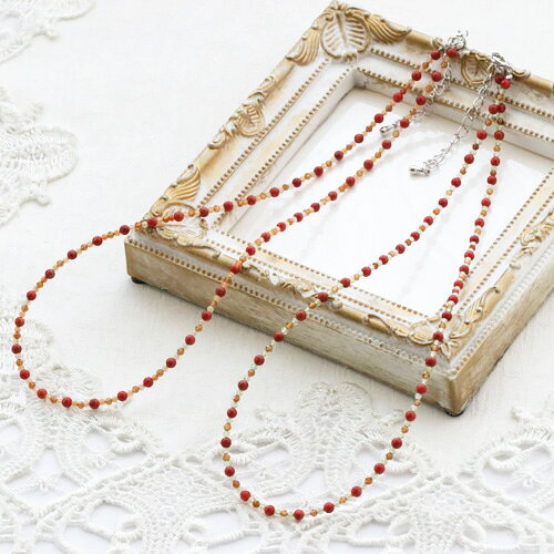 アフリカ珊瑚 ヘソナイトガーネット カーネリアン ペリドット ネックレス 約41~42cm(金具込)+5cm(金具込) 真鍮ヒキワアジャスター