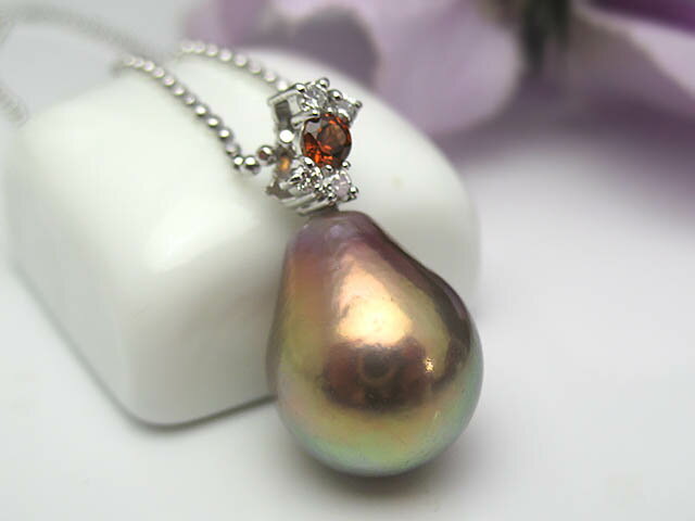 真珠ペンダント 送料無料 K18WG有核淡水真珠 天然色ペンダント パール ジュエリー 淡水真珠 真珠婚 30年 おすすめ品 可愛い スぺサルタイトガーネット 誕生日 淡水パール