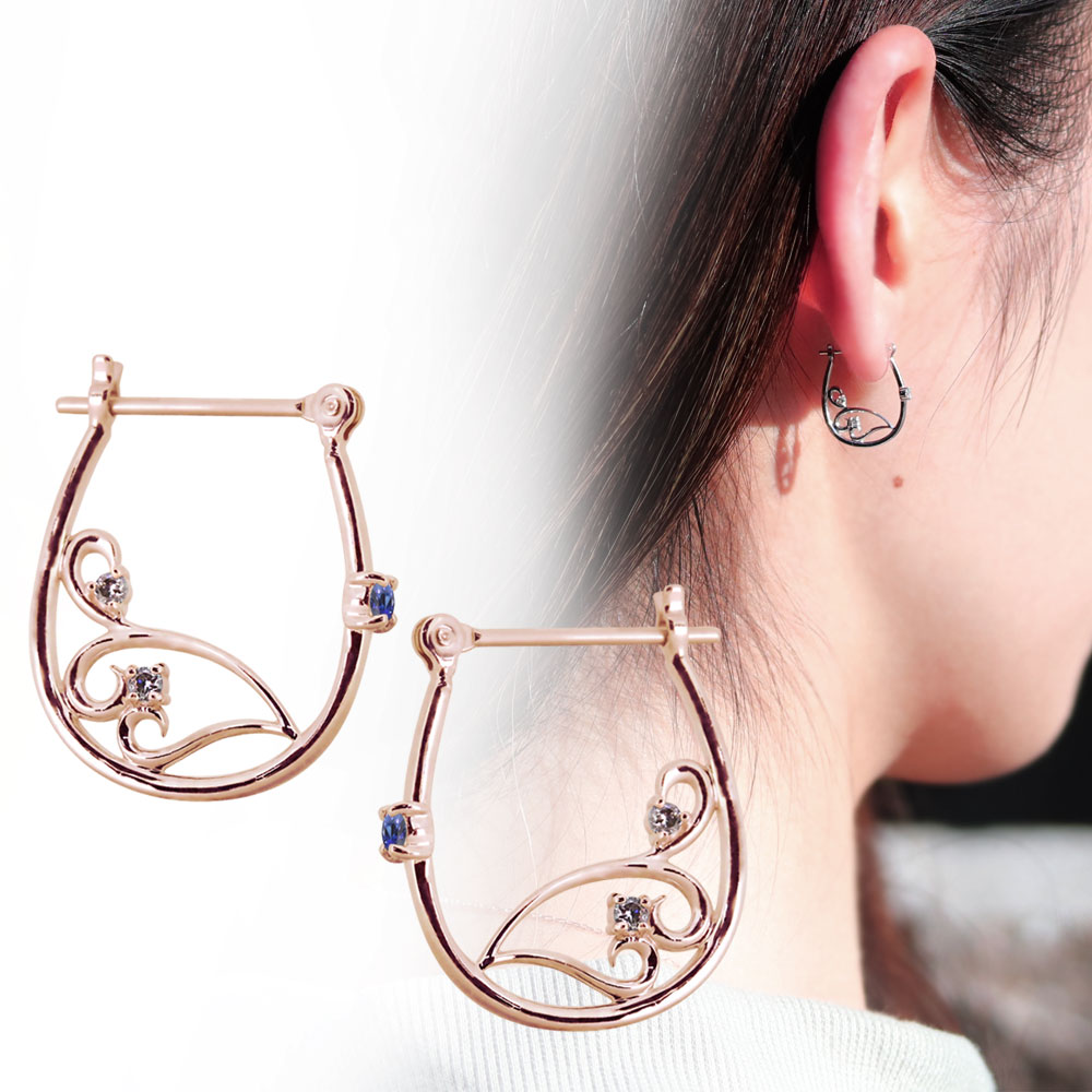 送料無料 フープピアス レディース ピアス フープ 誕生石 9月 サファイア 唐草 ハート クロッシングピアス キャッチレス 両耳 女性 大人