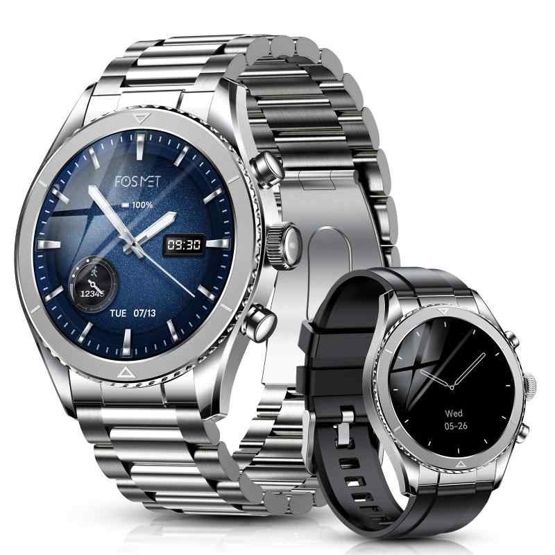 FOSMET R1 スマートウォッチ Bluetooth通話機能 アップグレードチップ 1.32インチAMOLEDサファイアガラス画面 常時表示 スマホとのGPS連動可能 14天連続使用 4PDセンサー 運動の自動検知機 IP68防水 睡