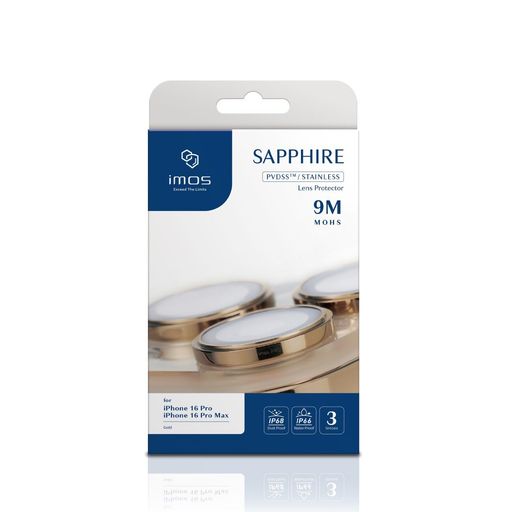 【imos】カメラレンズカバーiPhone16Pro/iPhone16ProMaxに適用カメラレンズ保護カバー9Hサファイア光学ガラス高清高透光簡単に貼り付けるカメラフィルム(Gold)
