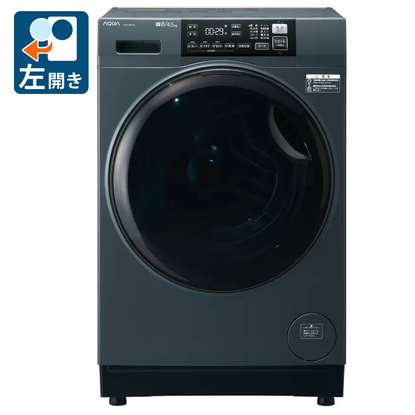 (標準設置料込_Aエリアのみ)アクア 8.0kg ドラム式洗濯乾燥機【左開き】サファイアブラック AQW-D8A-L-K AQUA [AQWD8ALK]