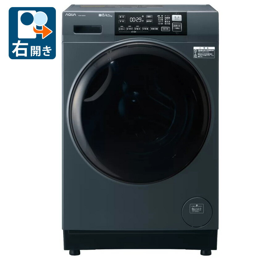 (標準設置料込_Aエリアのみ)アクア 8.0kg ドラム式洗濯乾燥機【右開き】サファイアブラック AQW-D8A-R-K AQUA [AQWD8ARK]