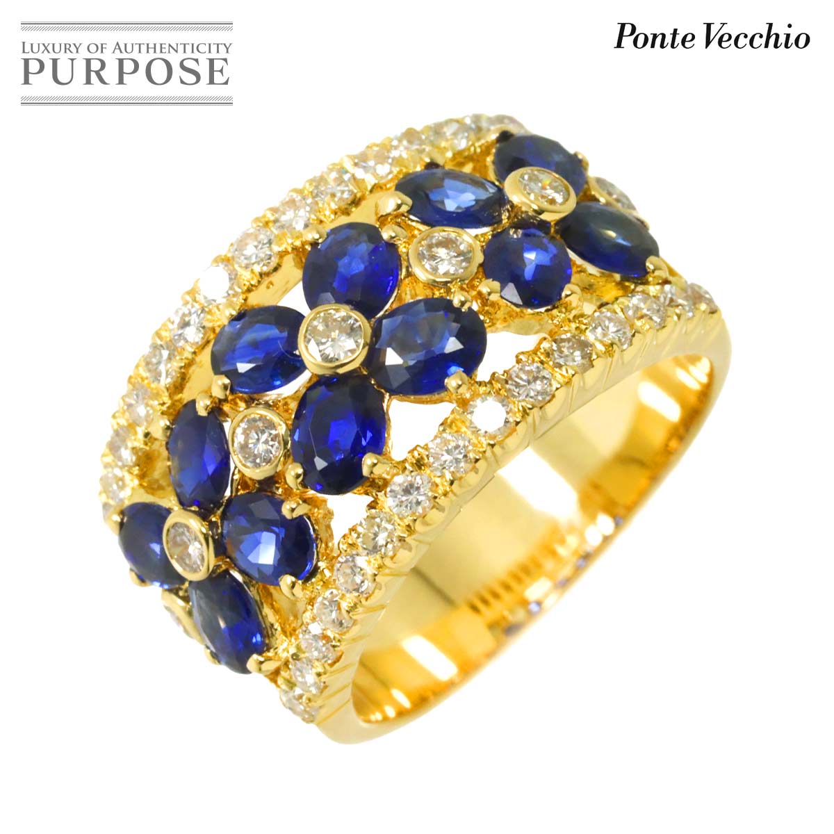 ポンテヴェキオ Ponte Vecchio 11.5号 リング サファイヤ 2.20ct ダイヤ 0.75ct K18 YG イエローゴールド 750 花 指輪【中古】BJ