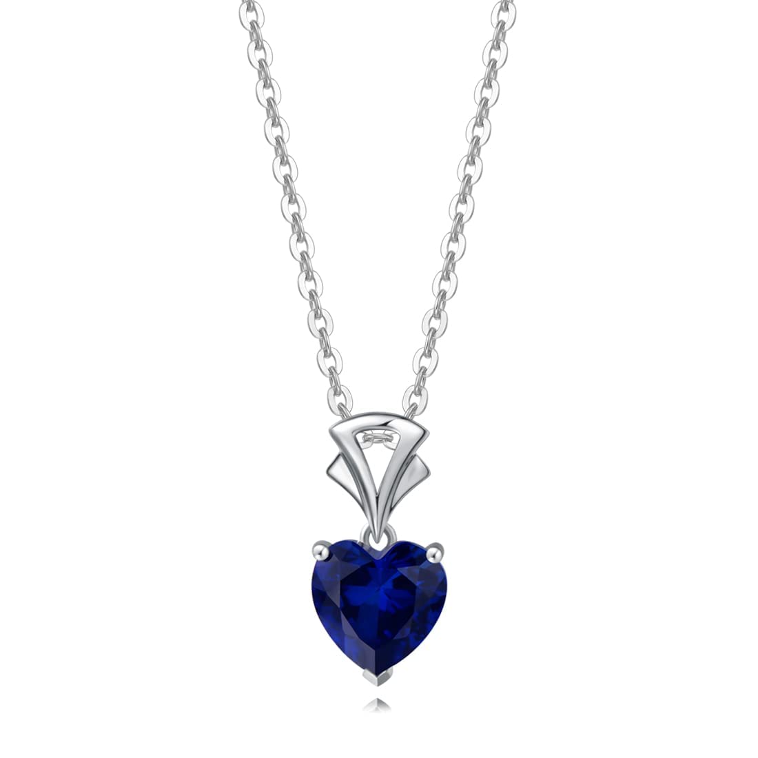[AGVANA] K14 ネックレス レディース ホワイトゴールド ハート ペンダント 合成宝石 サファイア 9月 誕生石 シルバーチェーン ジュエリー 母 妻 彼女へ 誕生日 記念日 クリスマス プレゼント ラッピング付き