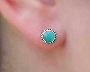 7mm ターコイズ スタッド イヤリング スターリング シルバー、ターコイズ ラウンド スタッド、サークル スタッド イヤリング、ストーン イヤリング、エスニック イヤリング MiYa Jewelry 7mm Turquoise Stud Earrings Sterling Silver, Turquoise Roun
